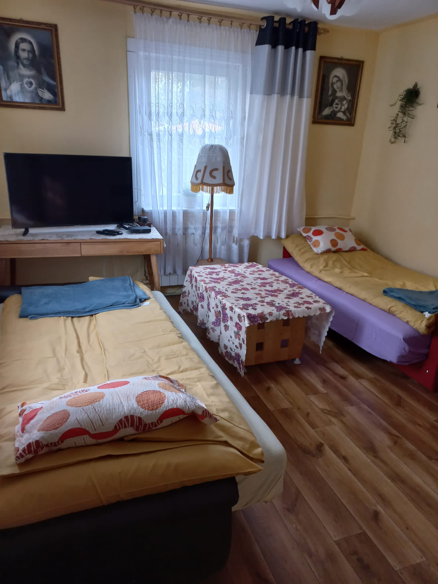Oferujemy noclegi w urokliwym, starym, drewnianym domu, przez 365 dni w roku. Do dyspozycji jest 10 miejsc noclegowych w 3 pokojach: